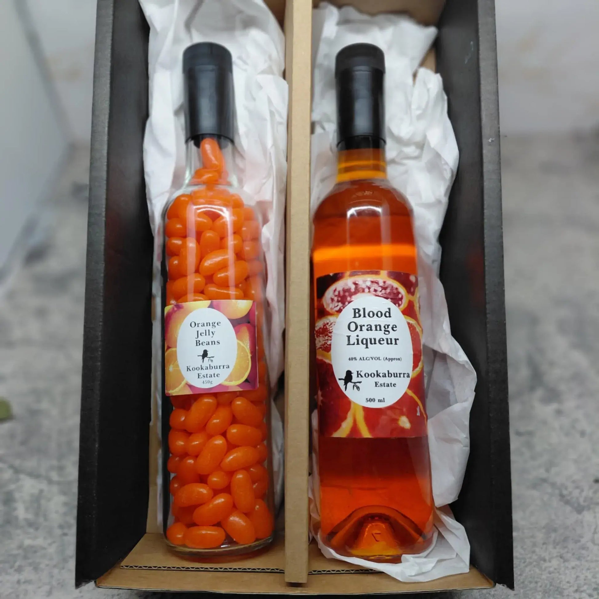 If you love Blood Oranges and you love Liqueurs you will love this pack. We have taken a 500ml bottle of our Blood Orange Liqueur and added a Bottle of Orange Jelly Beans to it. All neatly boxed