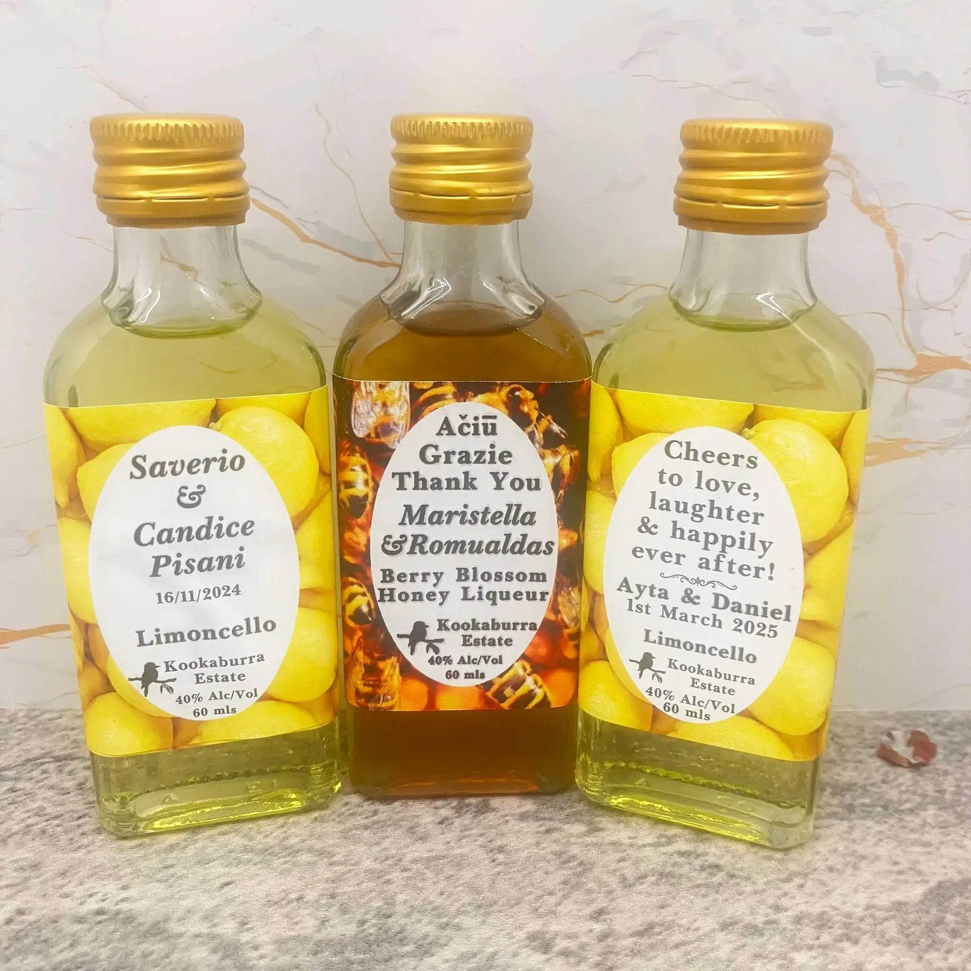 Family and friends can continue to toast your marriage after the celebration, with Kookaburra Estate’s personalised spirits.