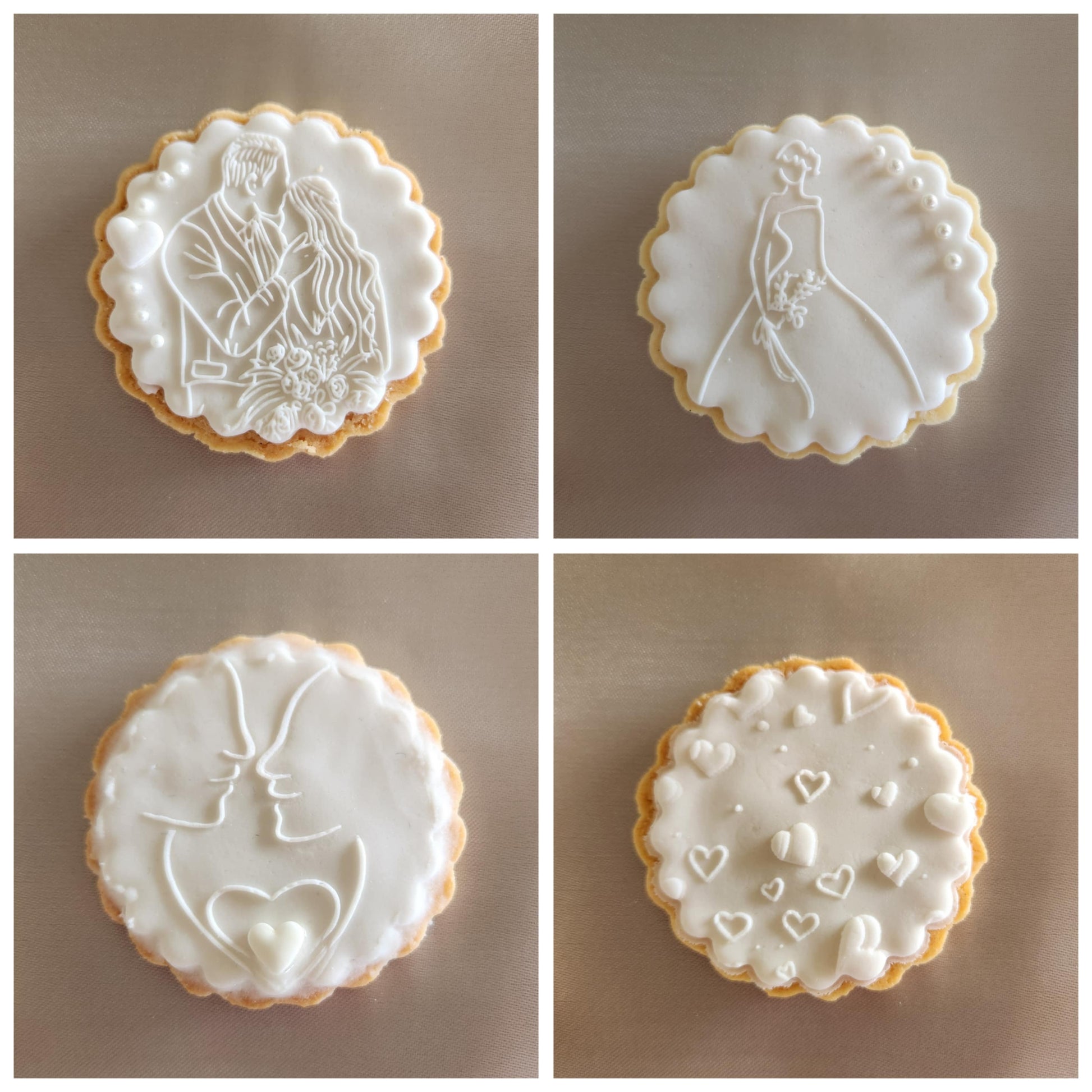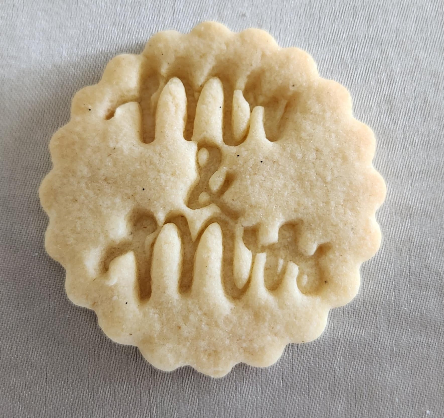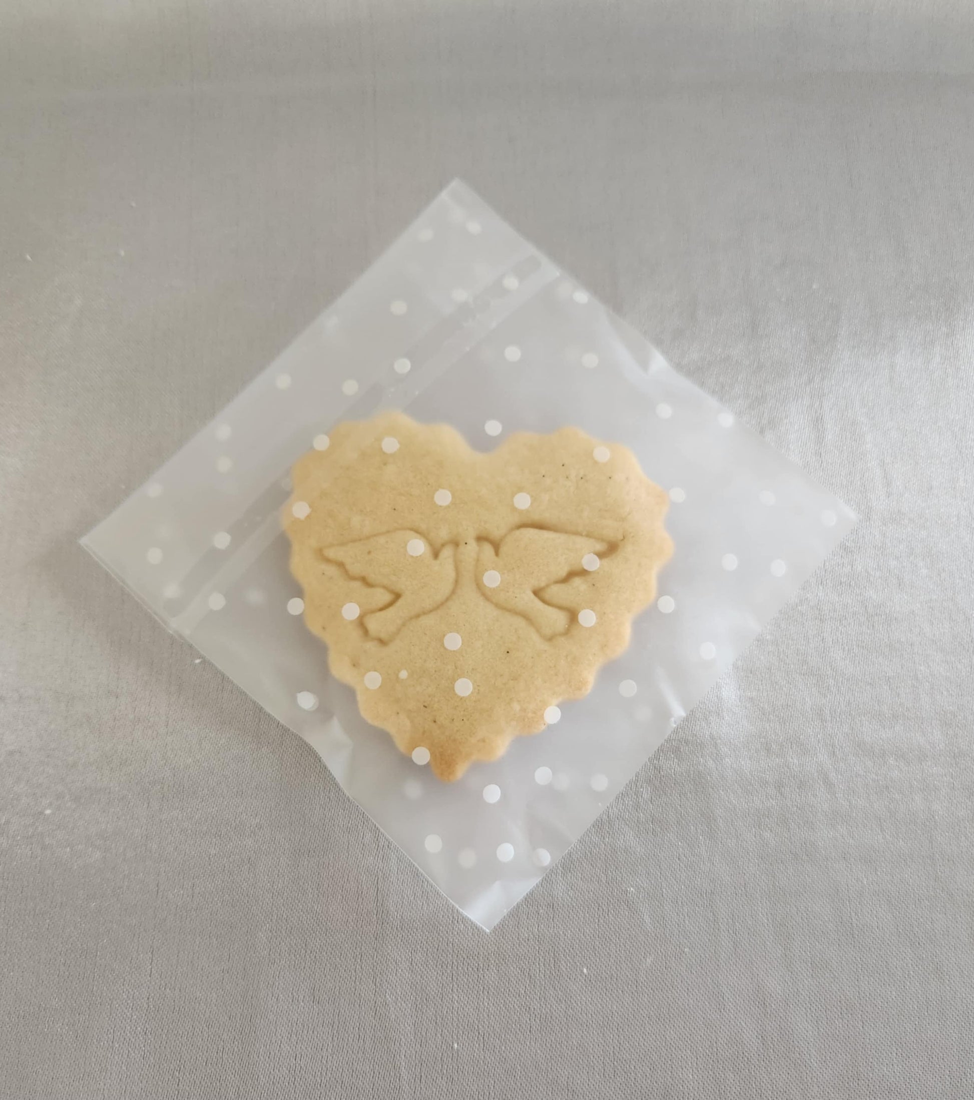 Double Vanilla, double sided approx. 6cm round or heart shaped biscuits. individually shrink wrapped and packed in bags for the table setting. A large variety of fronts in fondant and embossed backs, to choose from. Biscuits are made from a family recipe 100 years old. All orders are handmade and crafted.