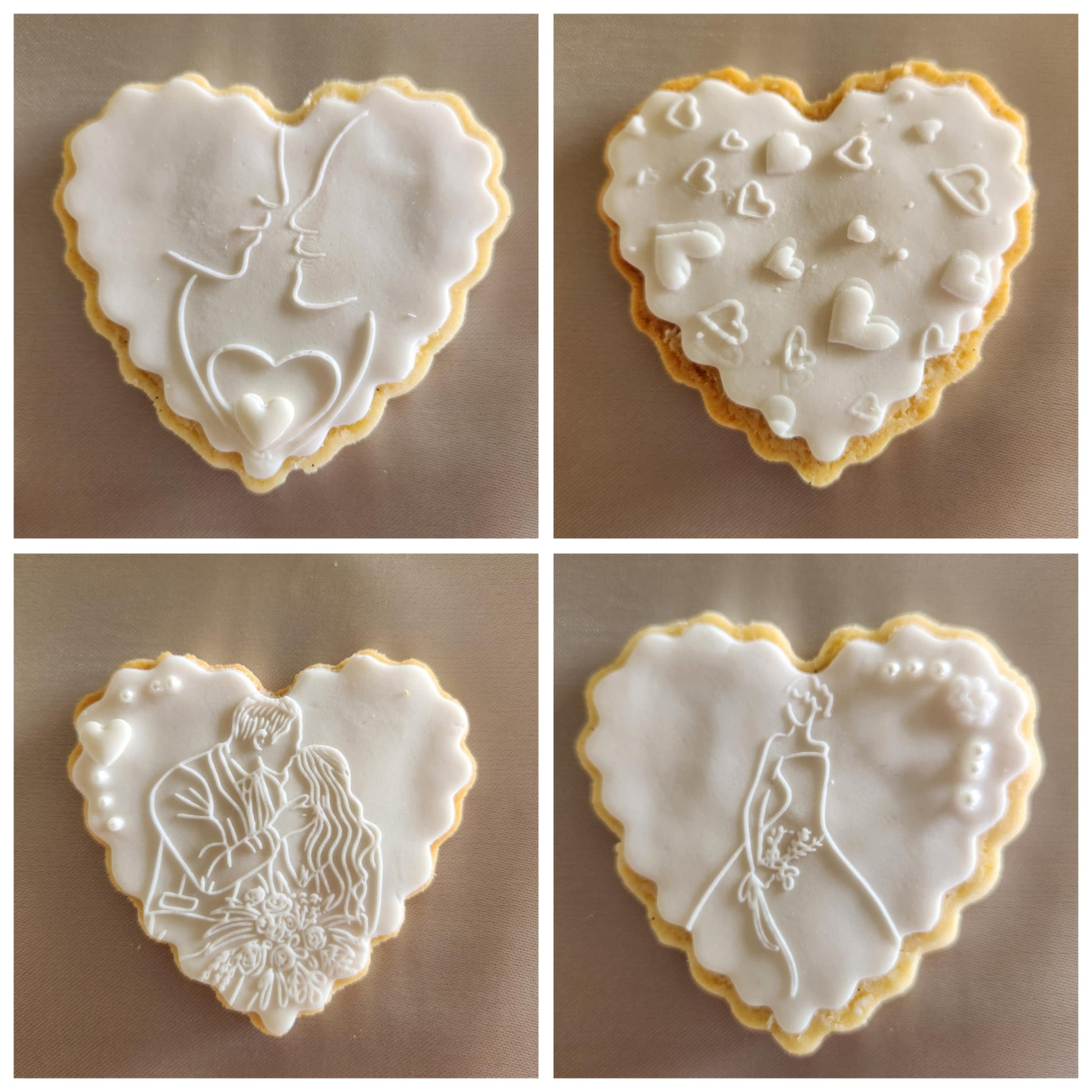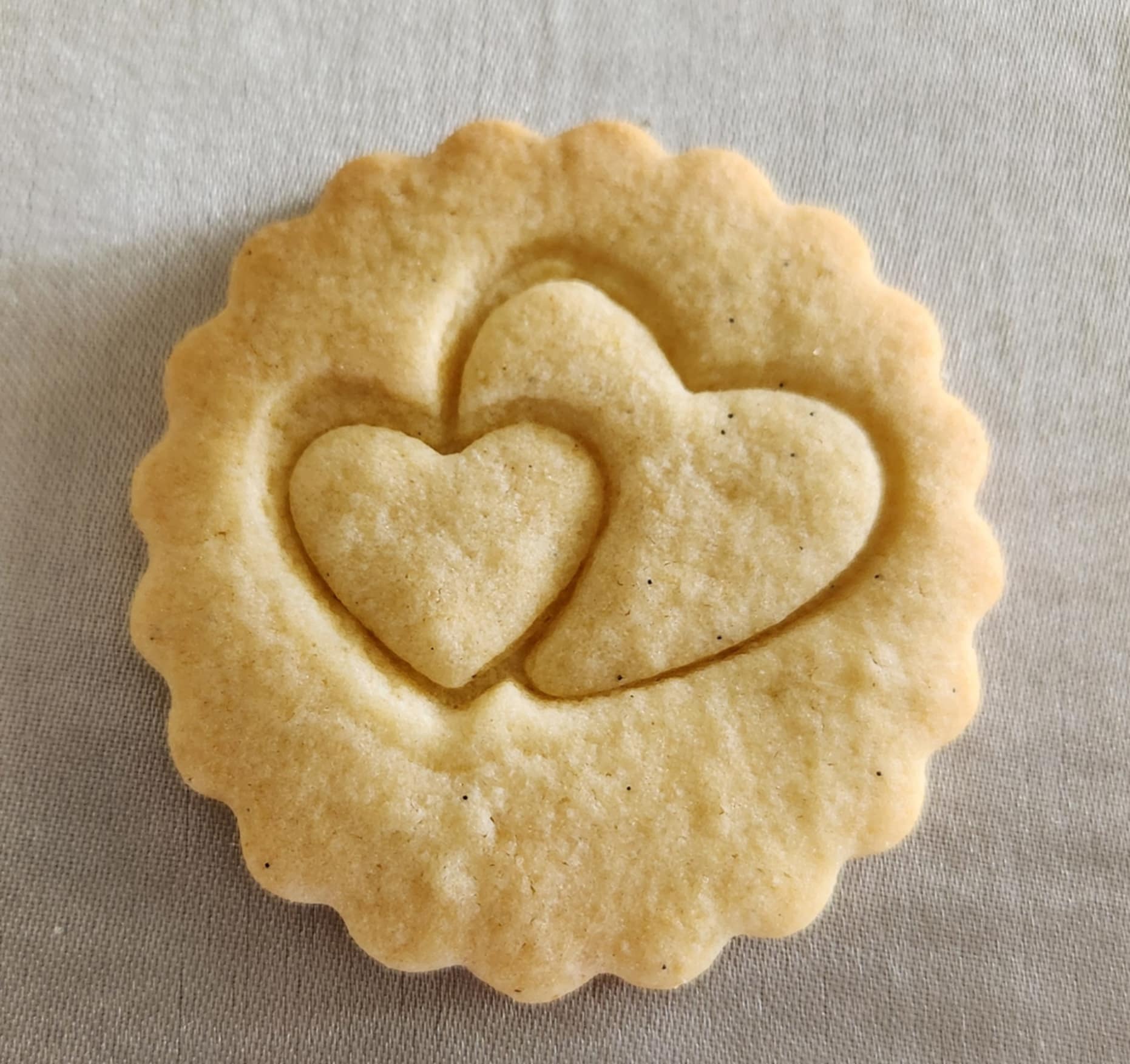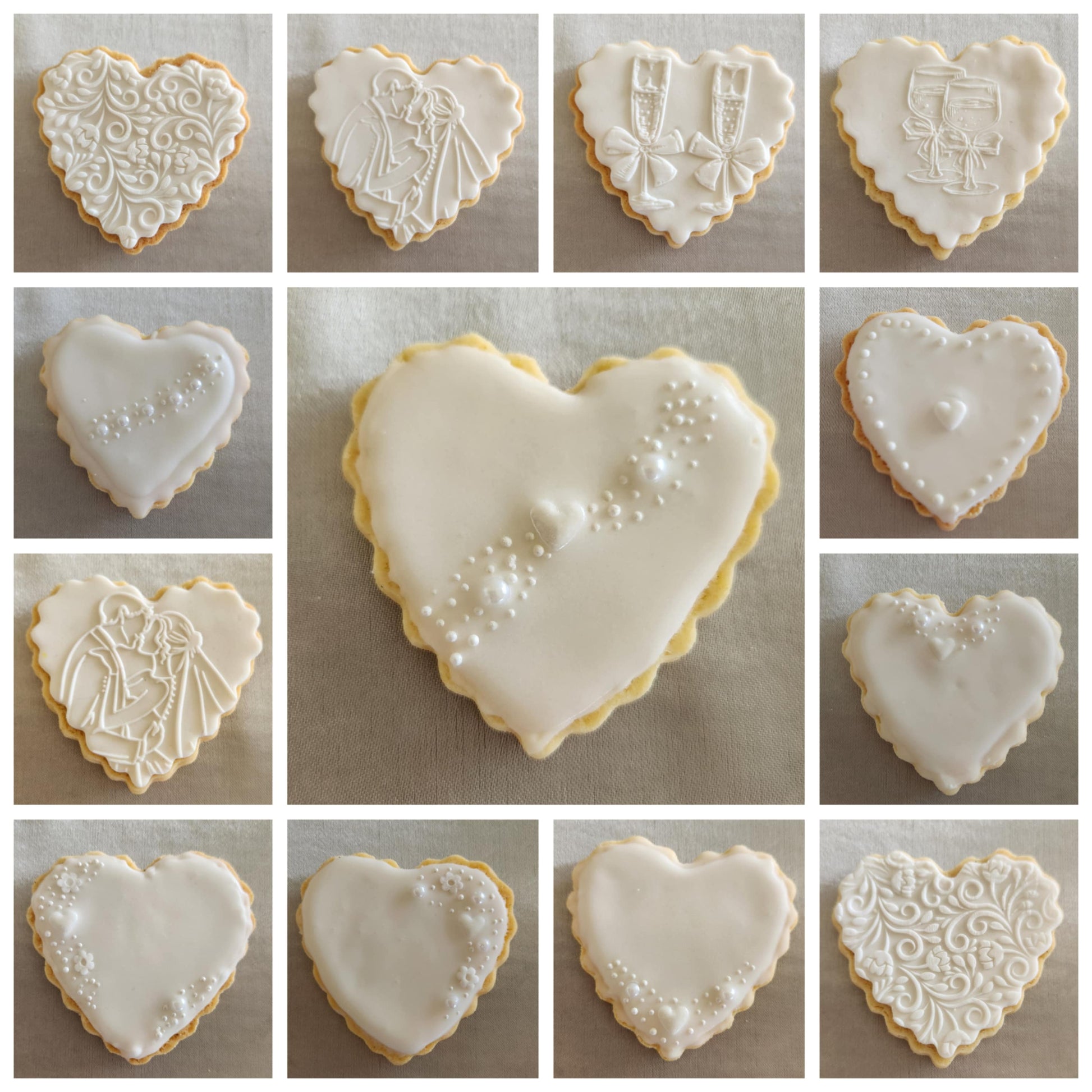 Double Vanilla, double sided approx. 6cm round or heart shaped biscuits. individually shrink wrapped and packed in bags for the table setting. A large variety of fronts in fondant and embossed backs, to choose from. Biscuits are made from a family recipe 100 years old. All orders are handmade and crafted.